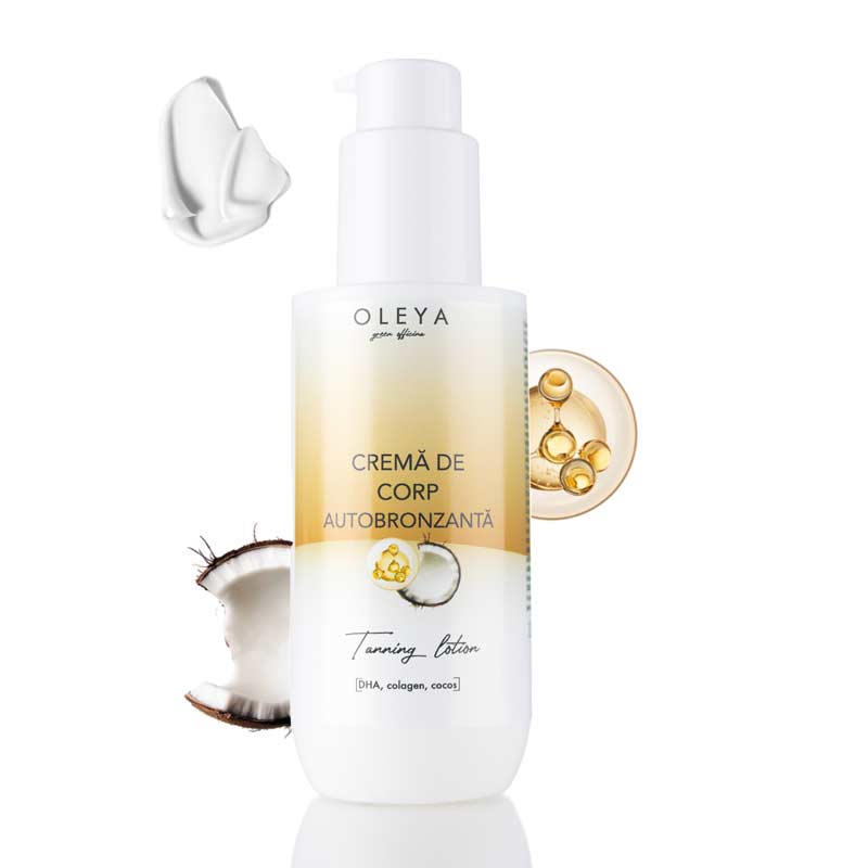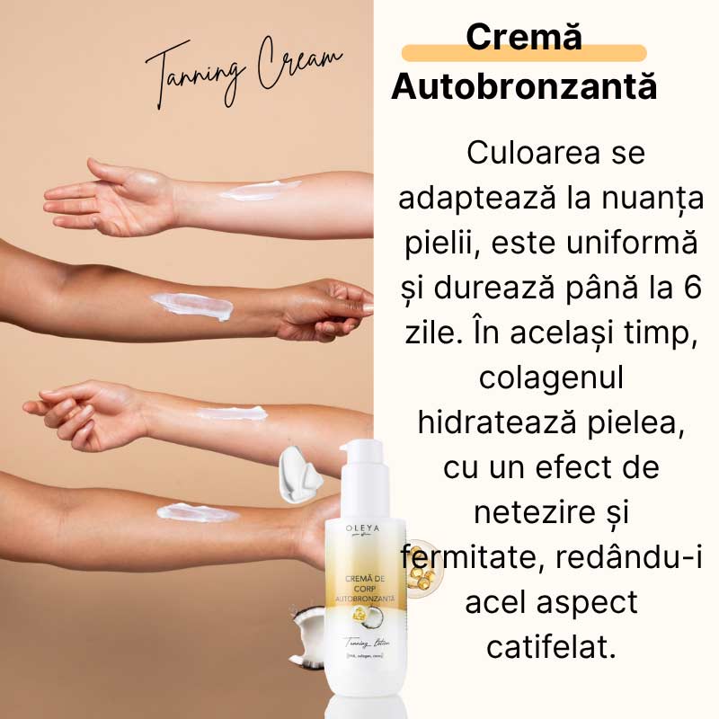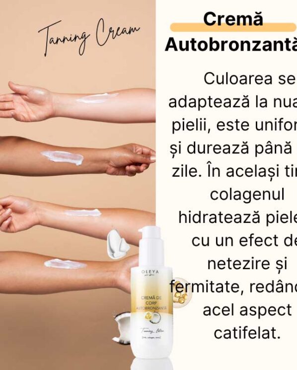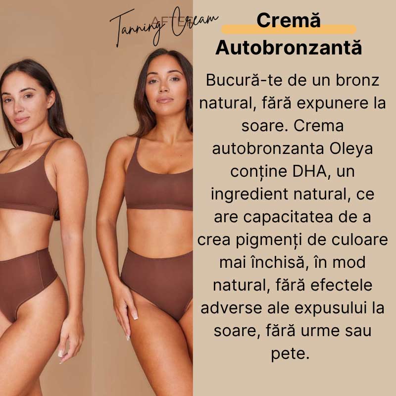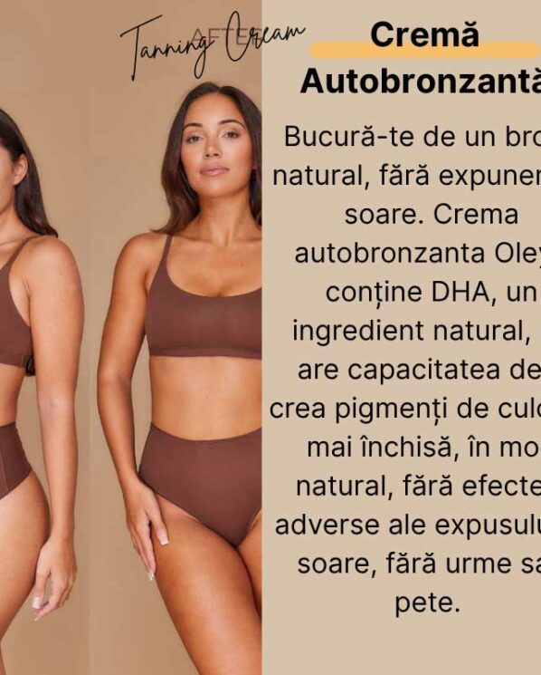DHA -ul este un ingredient obținut din plante care interacționează cu aminoacizii din celulele moarte ale pielii pentru a oferi o nuanta închisă pielii – oferind un bronz natural. Crema autobronzantă pentru corp se aplică uniform, pentru a evita petele.