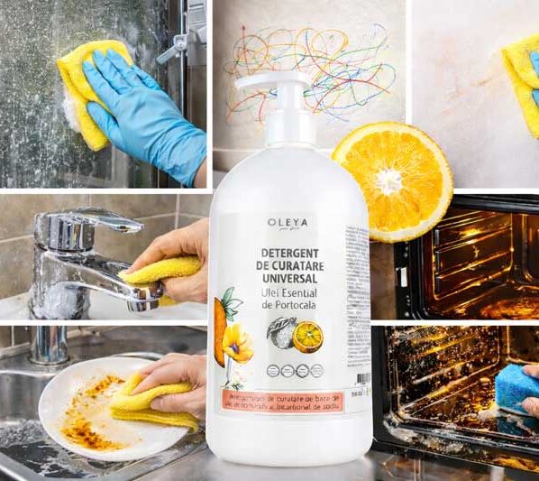 Detergentul universal Oleya cu aroma inconfundabilă de portocale, aromă naturală – un produs 100% vegan – detergentul universal este concentrat si se folosește direct pe suprafața murdară sau pe haine în cazul petelor care se scot greu (ruj, pix, gumă, cerneală, petrol, rășină)