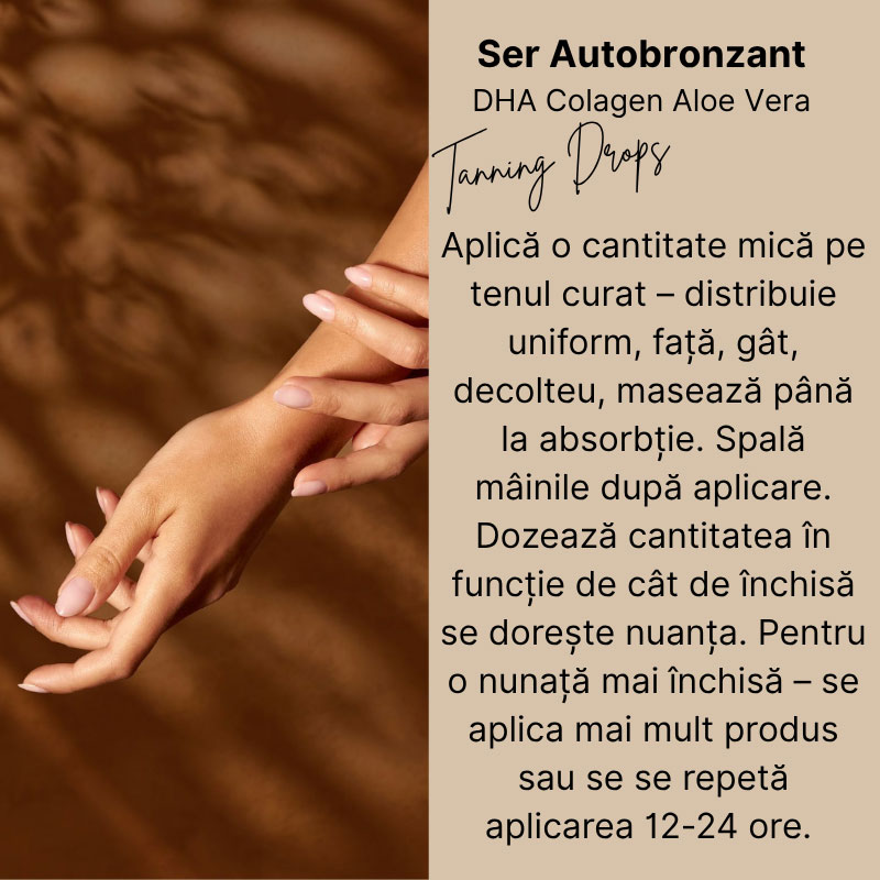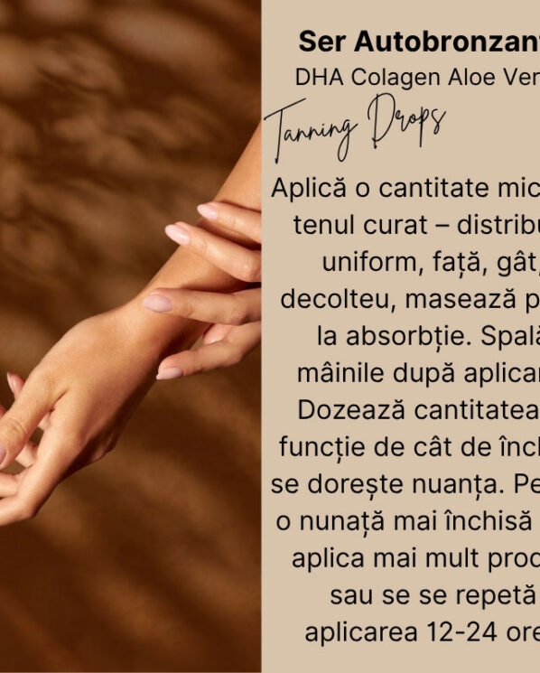 DHA -ul este un ingredient obținut din plante care interacționează cu aminoacizii din celulele moarte ale pielii pentru a oferi o nuanta închisă pielii – oferind un bronz natural. Efectul său se poate observa de la 6-8 h de la aplicare și este de preferat după ce ați aplicat serul sa nu spălam tenul la scurt timp. Serul se poate aplica de dimineață, de exemplu, lăsăm să intre în piele iar după cateva ore puteți să aplicați machiajul dacă doriți sau aplicați înainte de somn iar a doua zi vă veți trezi cu o piele mai închisă și uniformă. Odată instalat bronzul poate dura până la 5-6 zile ca acesta să scadă gradual. Desigur, dacă doriți un bronz mai intens se poate reaplica produsul, ținem să menționăm ca dha-ul nu este un produs toxic.