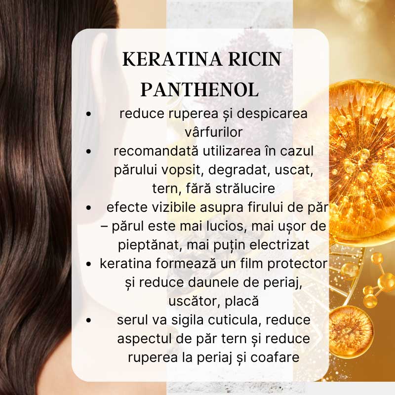 Sigilează cuticula, reduce aspectul de păr aspru și tern